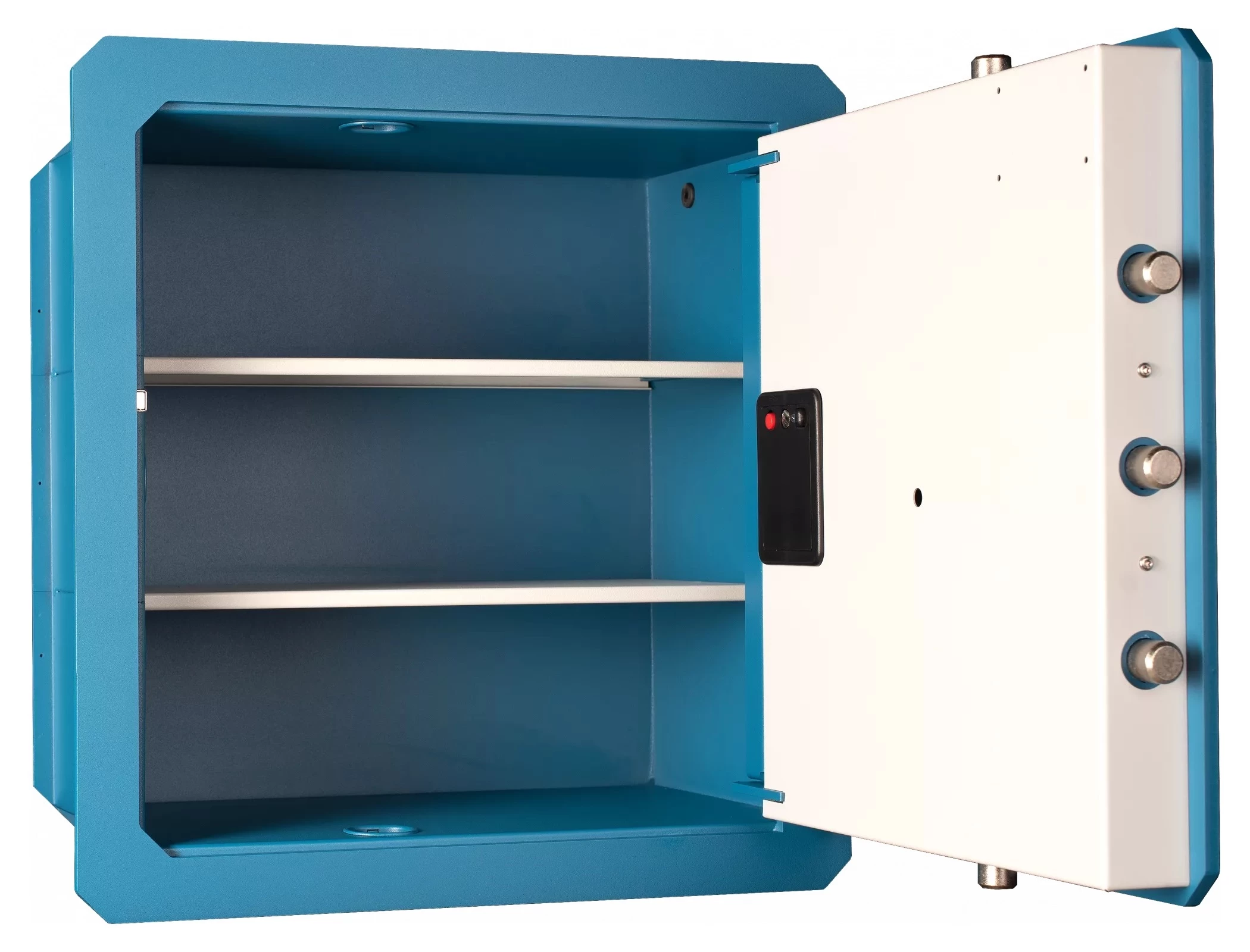 Для удобного и упорядоченного размещения ценностей предусмотрены две съёмные полки, разделяющие пространство сейфа на три уровня.